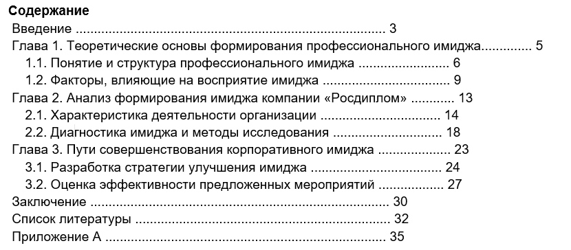 должно выглядеть содержание дипломной